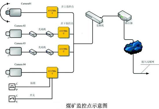 煤礦工業(yè)長(zhǎng)期停留在人工開采水平,生產(chǎn)效率低,安全隱患多,如“瓦斯爆炸、地下滲水等事故經(jīng)常發(fā)生。因此使用放入防爆箱內(nèi)的金視博光端機(jī)將井下的視頻、數(shù)據(jù)等信號(hào)通過光纖傳輸?shù)降孛姘踩O(jiān)控中心。監(jiān)控中心的工作人員利用此遠(yuǎn)程監(jiān)控系統(tǒng)就可以直接對(duì)井下情況進(jìn)行實(shí)時(shí)監(jiān)控。華創(chuàng)視通生產(chǎn)的光端機(jī)通過一芯光纖傳輸多路數(shù)字非壓縮視頻、100M以太網(wǎng)信號(hào)、多路電話信號(hào)、多路控制數(shù)據(jù)信號(hào)和多路報(bào)警信號(hào),非常適用于煤礦安全監(jiān)控系統(tǒng)。